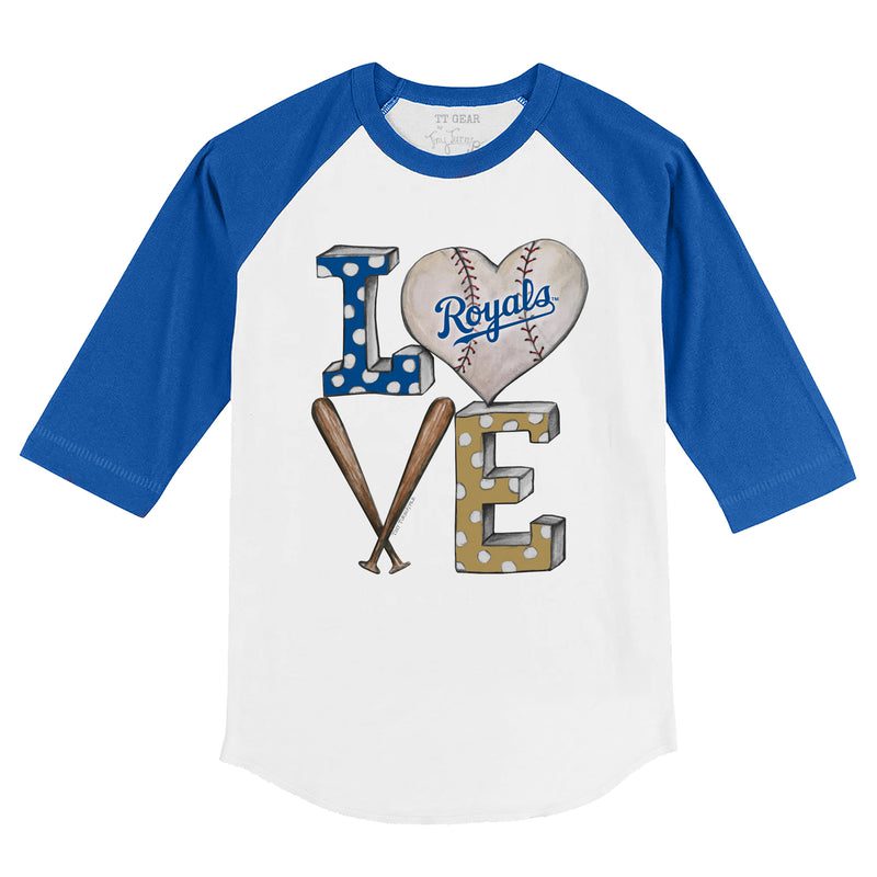 Kansas City Royals Baseball LOVE 3/4 Royal Blue Sleeve Raglan Shirt