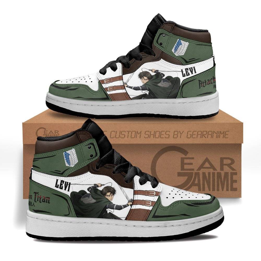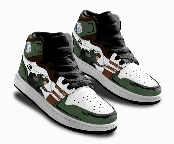 Levi Ackerman Kids Sneakers Custom Anime Attack On Titan Kids Jordan 1 Shoes