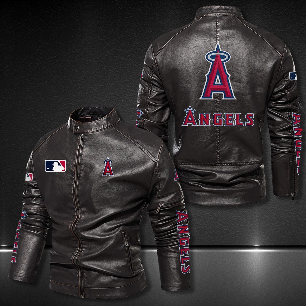Los Angeles Angels Motor Collar Leather Jacket For Biker Racer