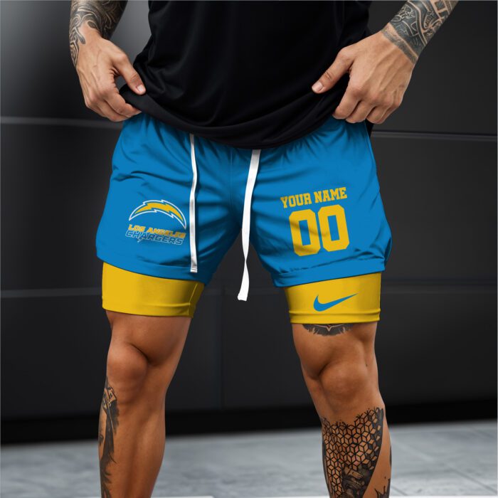 Los Angeles Chargers NFL Double Layer Shorts Custom Your Name And Number WDS1050