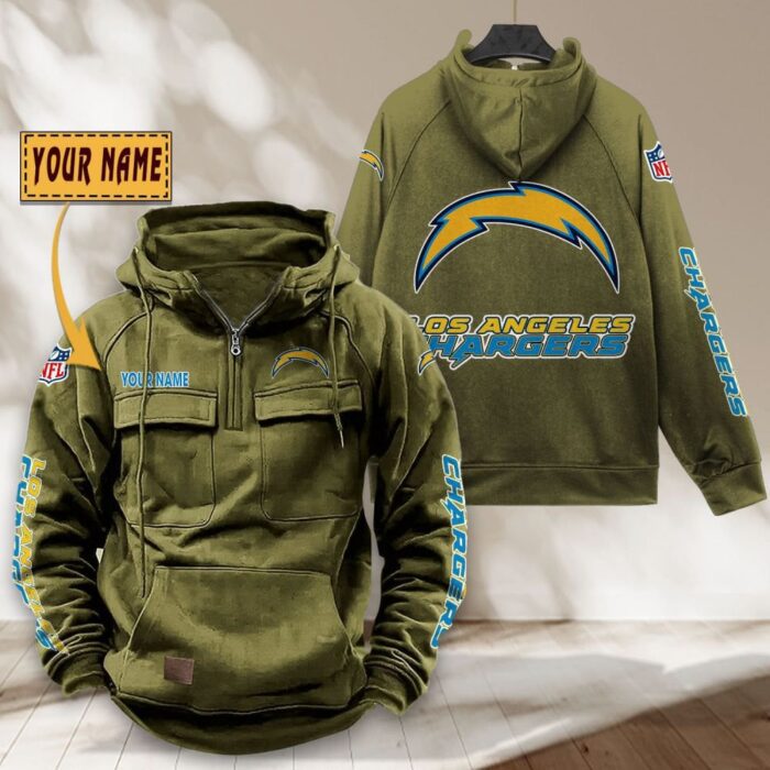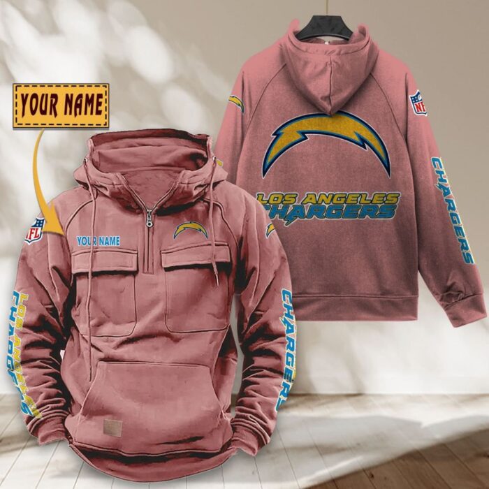 Los Angeles Chargers NFL Personalized Multi Pocket Quarter Zip Vintage Hoodie WVH1050
