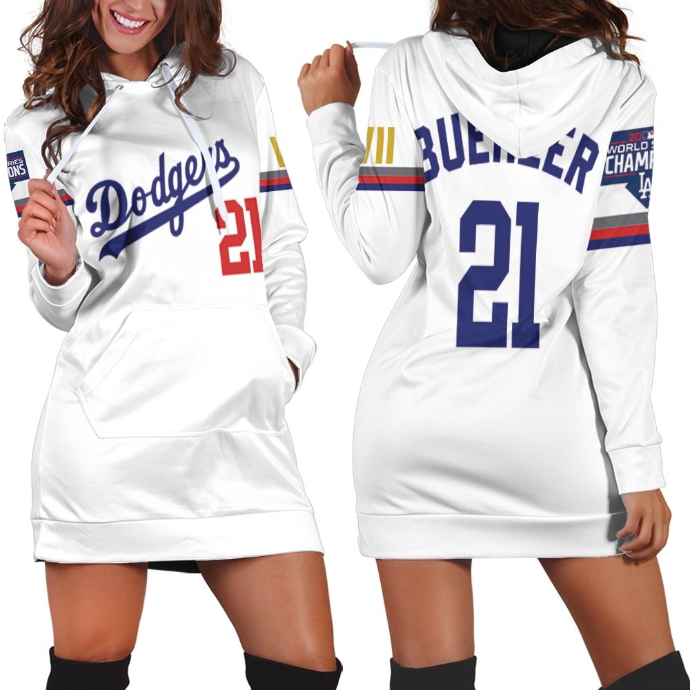 Los Angeles Dodgers Buehler 21 2020 Championship Golden Edition White Inspired Style Hoodie Dress HD3643
