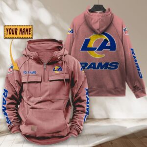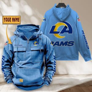 Los Angeles Rams NFL Personalized Multi Pocket Quarter Zip Vintage Hoodie WVH1049