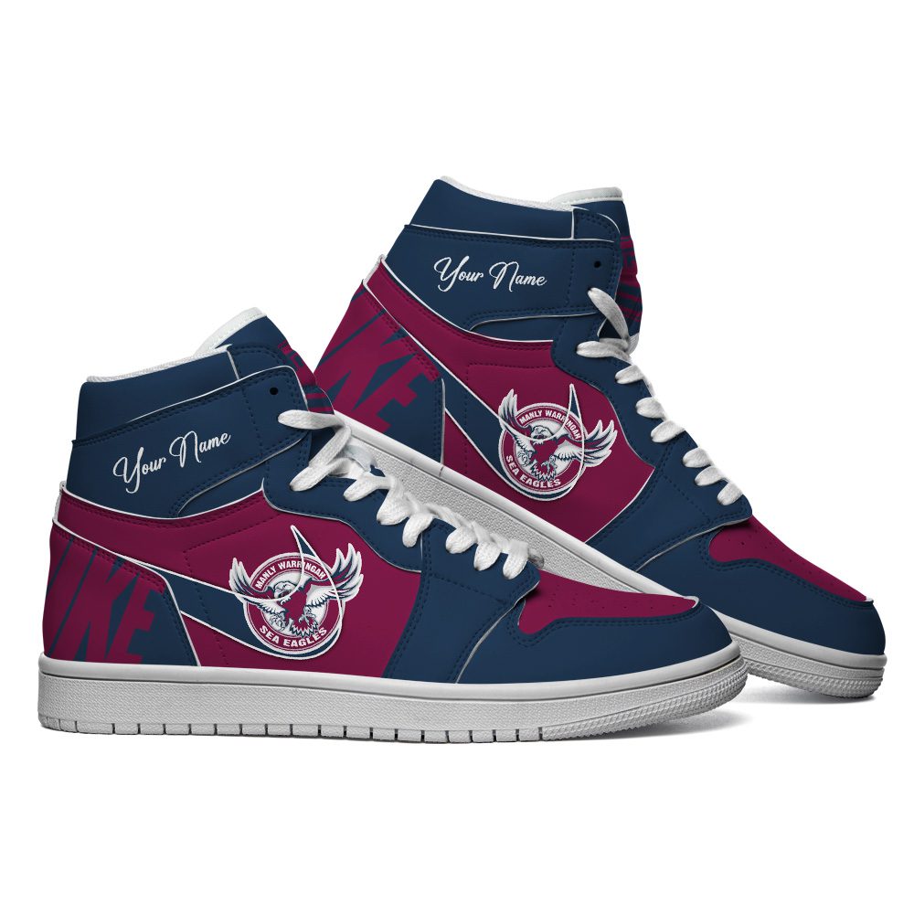 Manly Warringah Sea Eagles Custom Name NRL AJ1 Nike Sneakers High Top Shoes Collection