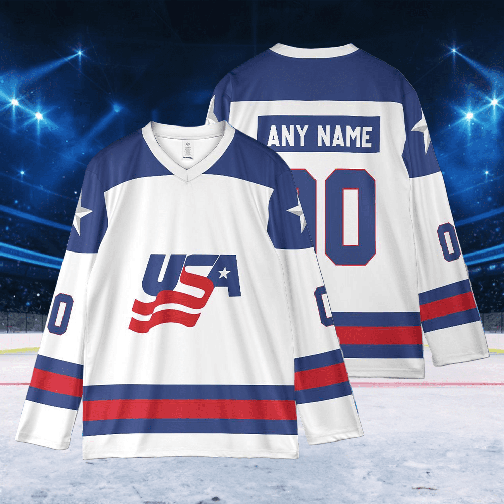 Men’s Usa Team Hockey Jersey Retro Throwback Miracle Team 4 Nation Tournament