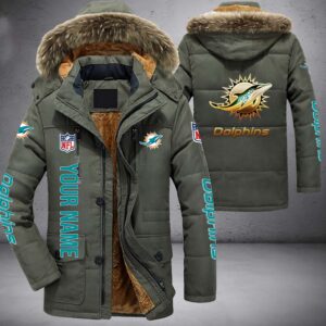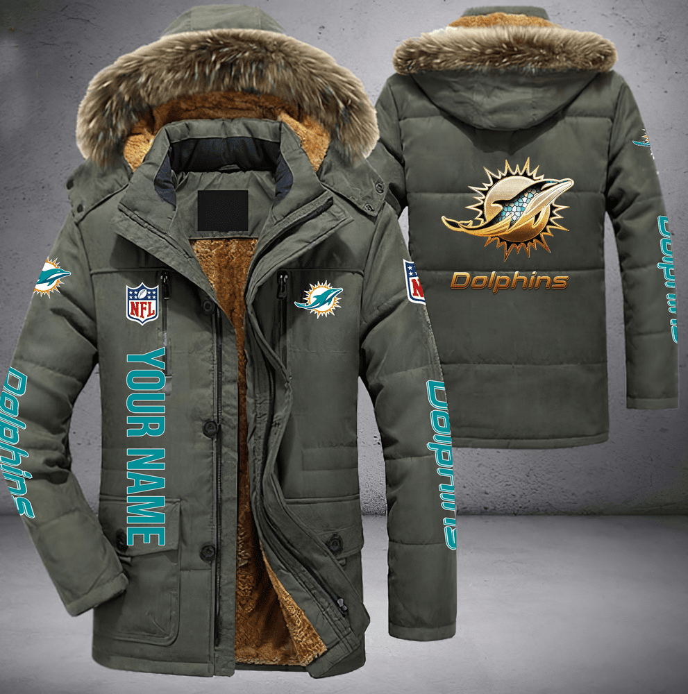 Miami Dolphins NFL Personalized Golden Logo Parka Jacket Fleece Coat Winter