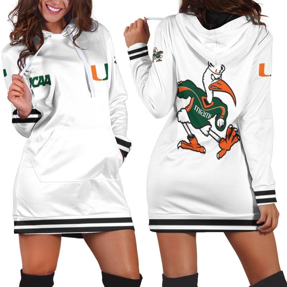 Miami Hurricanes Ncaa Classic White With Mascot Logo Gift For Miami Hurricanes Fans Hoodie Dress HD0272