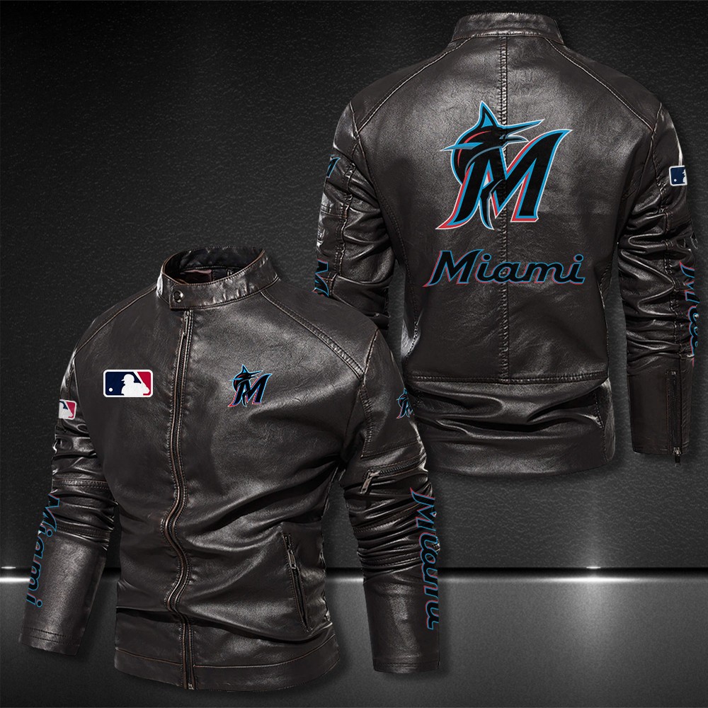 Miami Marlins Motor Collar Leather Jacket For Biker Racer