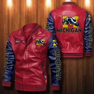 Michigan Wolverines Leather Bomber Jacket CTLBJ093