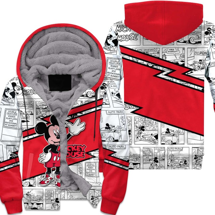 Mickey Mouse Red Gray Strips Comic Disney Fleece Pullover Zipped Up Unisex Hoodie