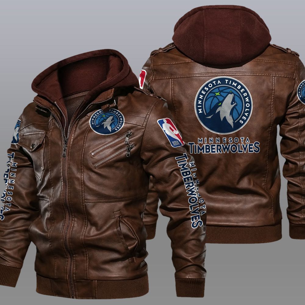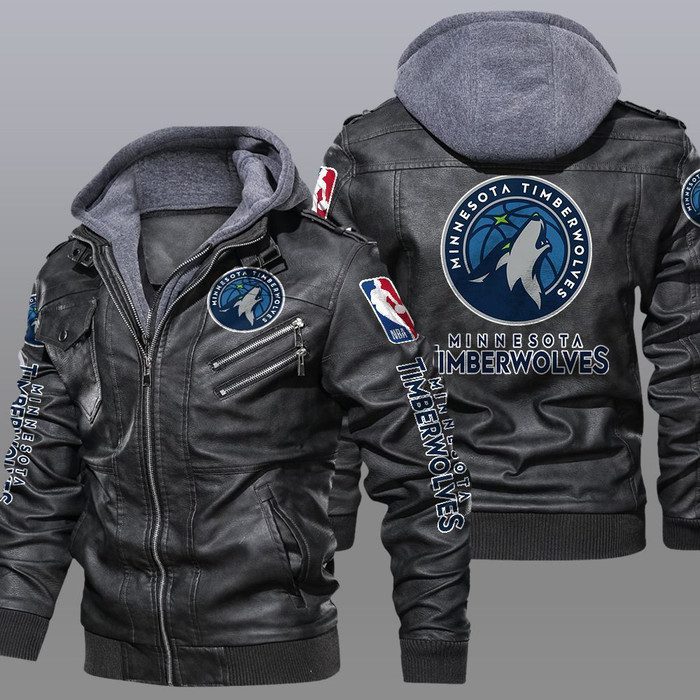 Minnesota Timberwolves Black Brown Leather Jacket LIZ157