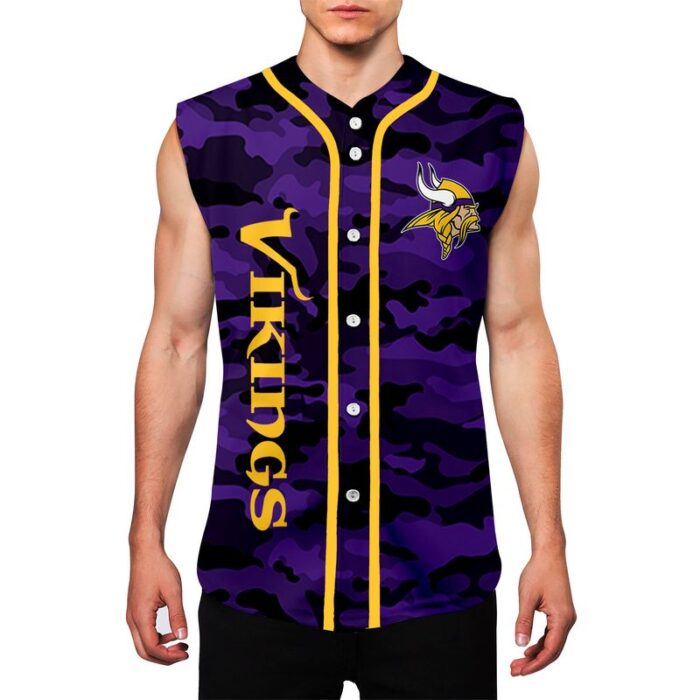 Minnesota Vikings Camo Sleeveless Baseball Jersey Tank Top Custom Name BBTJ1085
