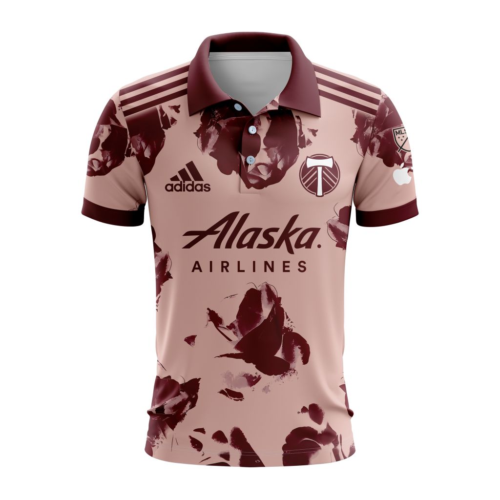 MLS Portland Timbers 2023 Away Heritage Rose Custom Polo Shirt Golf Shirt