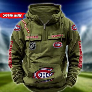 Montreal Canadiens NHL Hockey Vintage Quarter Zip Hoodie Retro Hoodie Custom Name WRH1011