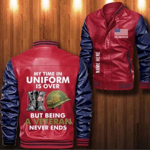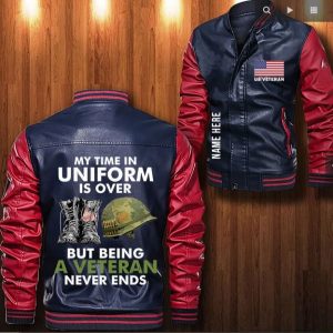 My Time In Uniform Is Over But Being A Veteran Never Ends Custom Personalized Leather Bomber Jacket CTLBJ105