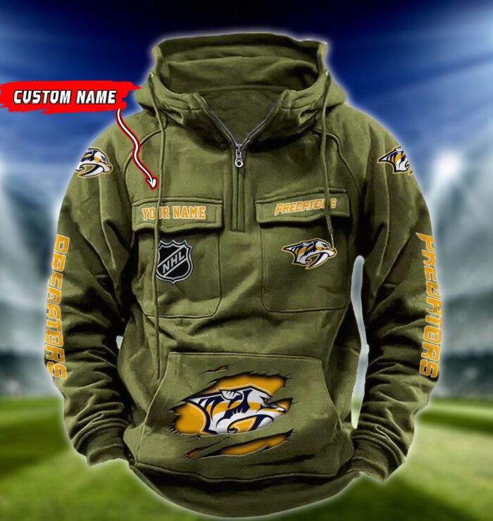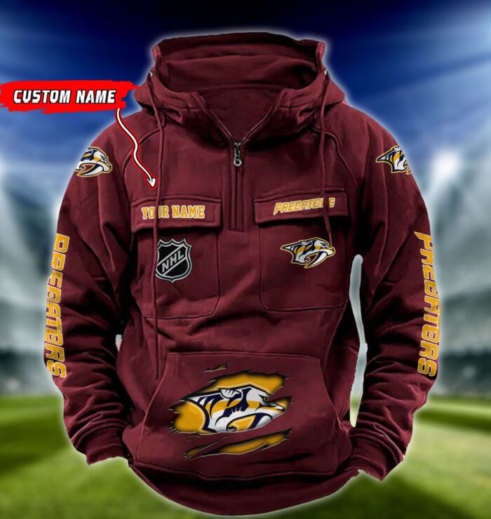 Nashville Predators NHL Hockey Vintage Quarter Zip Hoodie Retro Hoodie Custom Name WRH1015