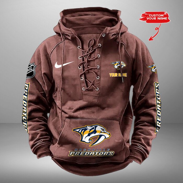 Nashville Predators NHL Swoosh Hooded Lace Up Retro Vintage Hoodie Custom Name