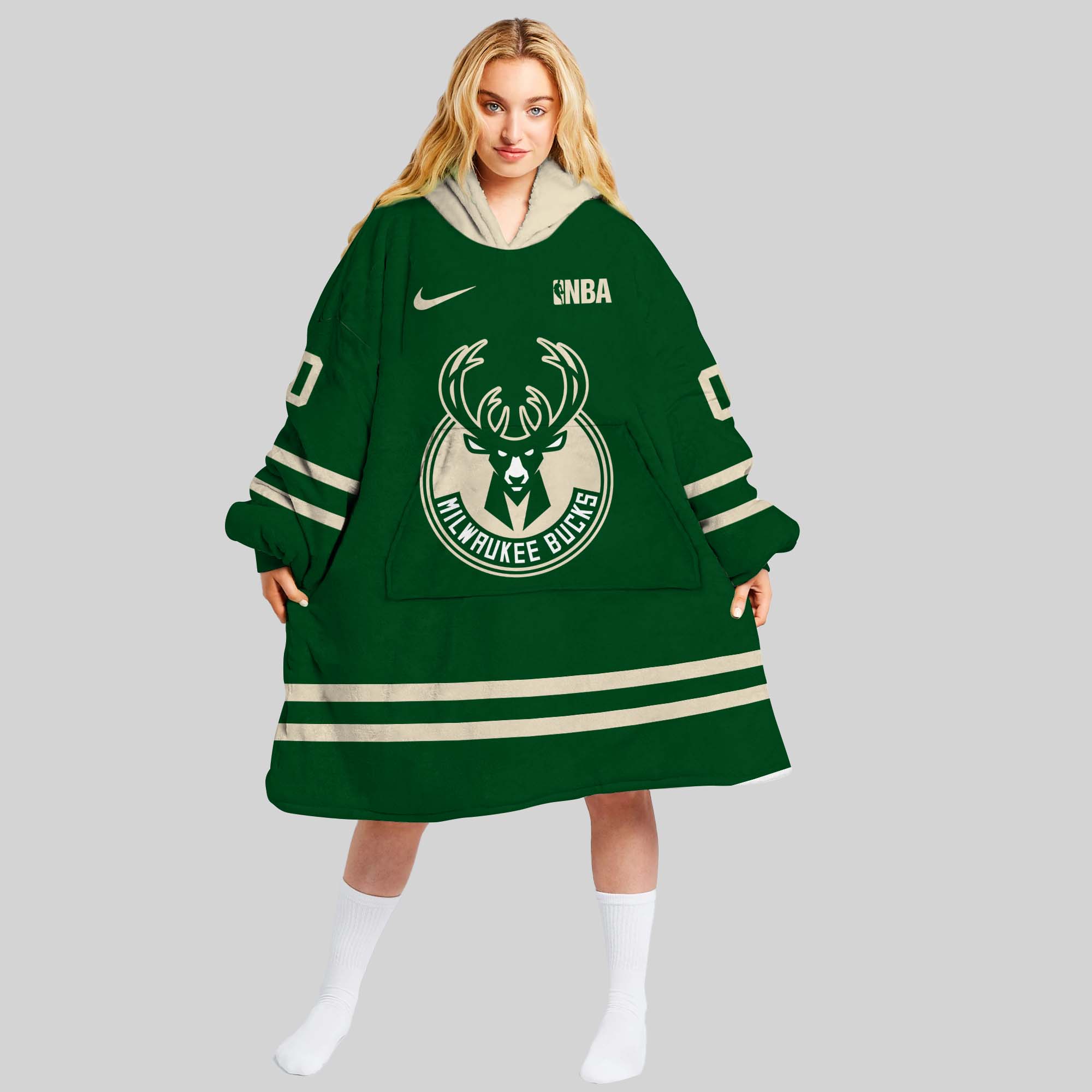 NBA Milwaukee Bucks Personalized Oodie Blanket Hoodie Wearable Blanket Snuggie Hoodie