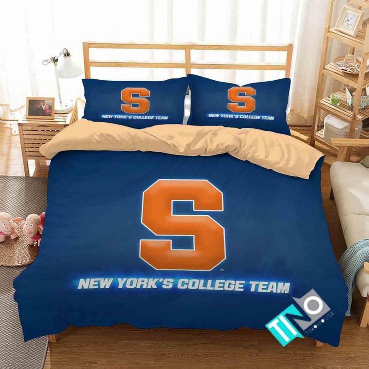 NCAA Syracuse Orange Logo New York’S College Team Bedding Set – 1 Duvet Cover & 2 Pillow Cases BS3258