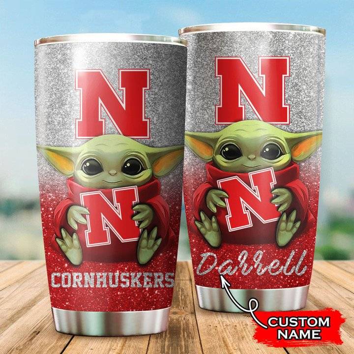 Nebraska Cornhuskers Baby Yoda Custom Name Tumbler TB1892