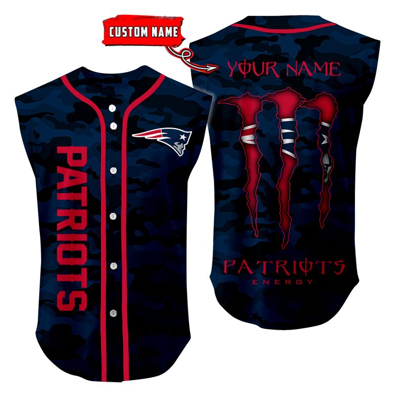 New England Patriots Camo Sleeveless Baseball Jersey Tank Top Custom Name BBTJ1086