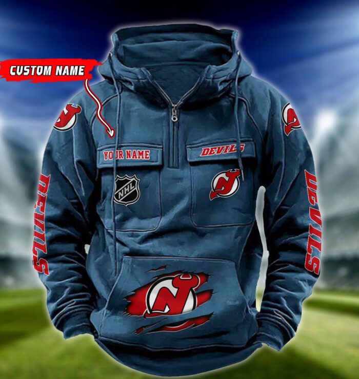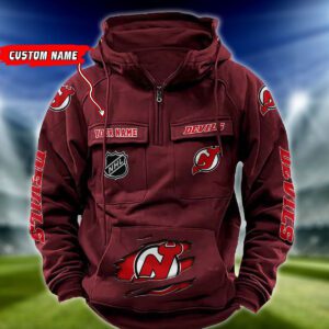 New Jersey Devils NHL Hockey Vintage Quarter Zip Hoodie Retro Hoodie Custom Name WRH1016