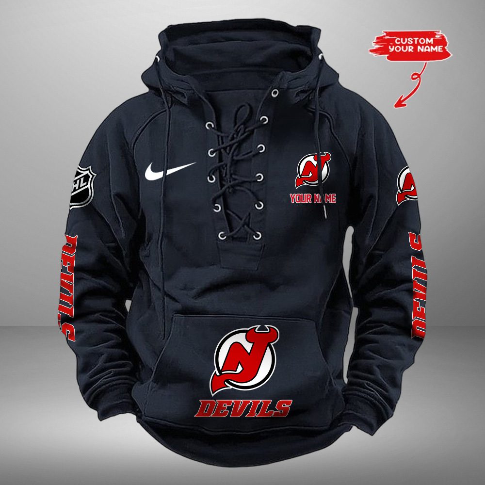 New Jersey Devils NHL Swoosh Hooded Lace Up Retro Vintage Hoodie Custom Name