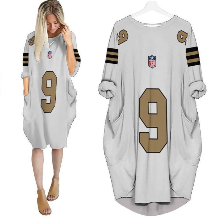 New Orleans Saints Drew Brees #9 Nfl American Football Team Logo Color Rush Custom 3D Gift For Saints Fans Batwing Pocket Dress PD1752