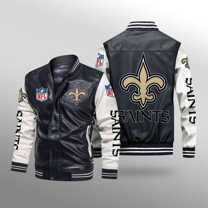 - This leather bomber jacket with high collar, full-zip front, and side seam pockets works as a finishing touch to a stylish cool-weather look
