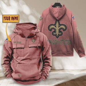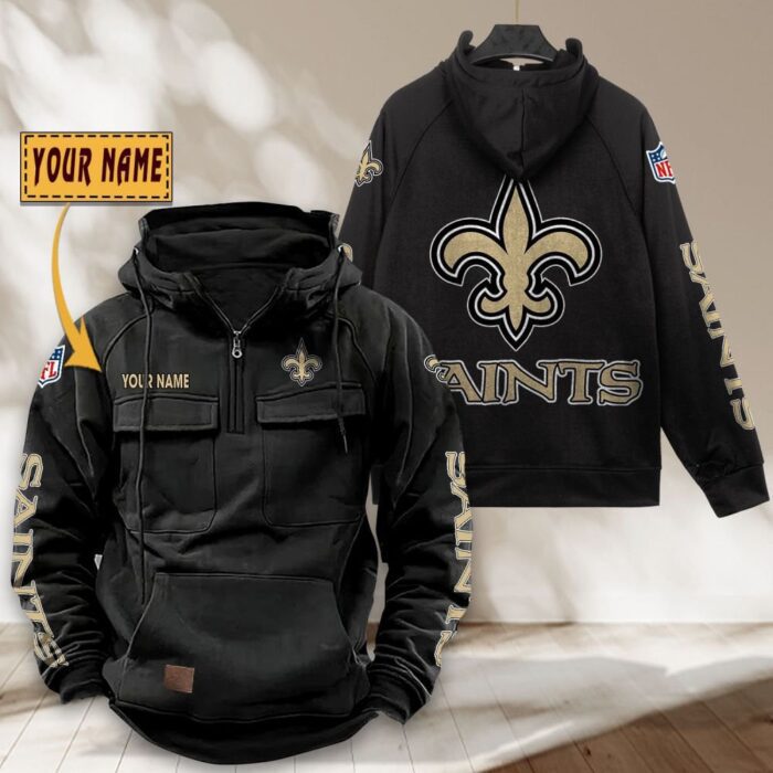 New Orleans Saints NFL Personalized Multi Pocket Quarter Zip Vintage Hoodie WVH1053