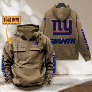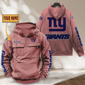 New York Giants NFL Personalized Multi Pocket Quarter Zip Vintage Hoodie WVH1058