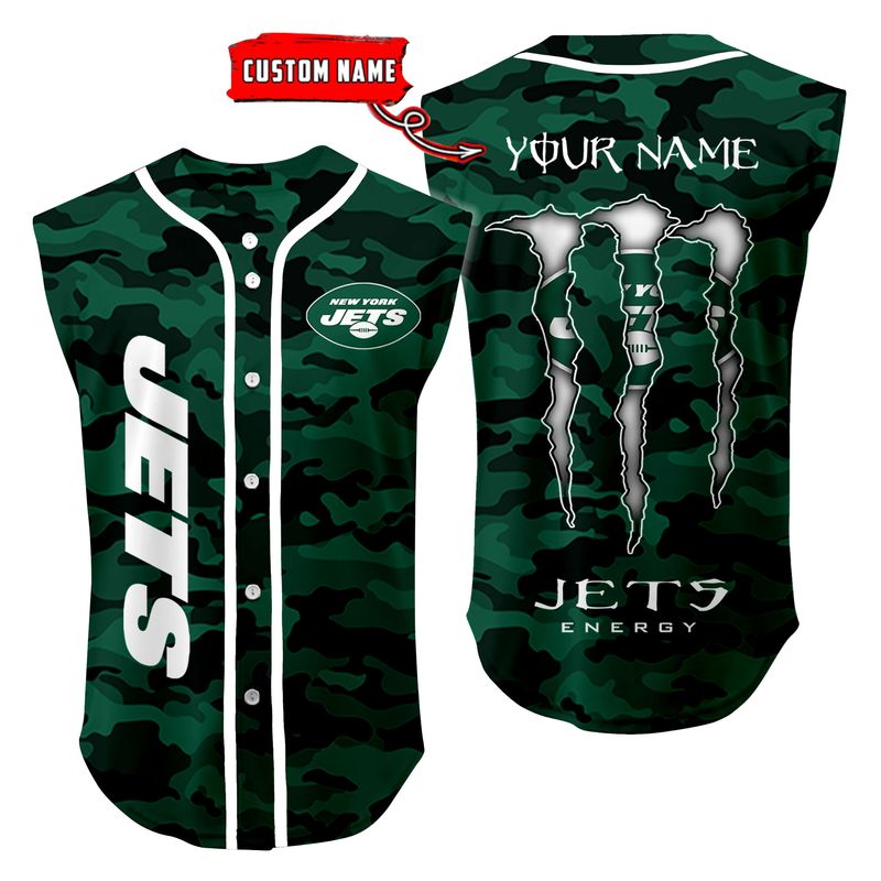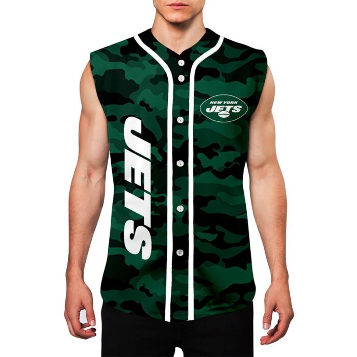 New York Jets Camo Sleeveless Baseball Jersey Tank Top Custom Name BBTJ1089