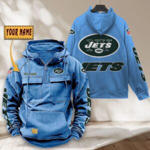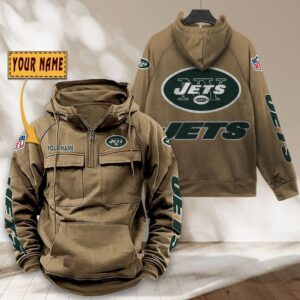 New York Jets NFL Personalized Multi Pocket Quarter Zip Vintage Hoodie WVH1056