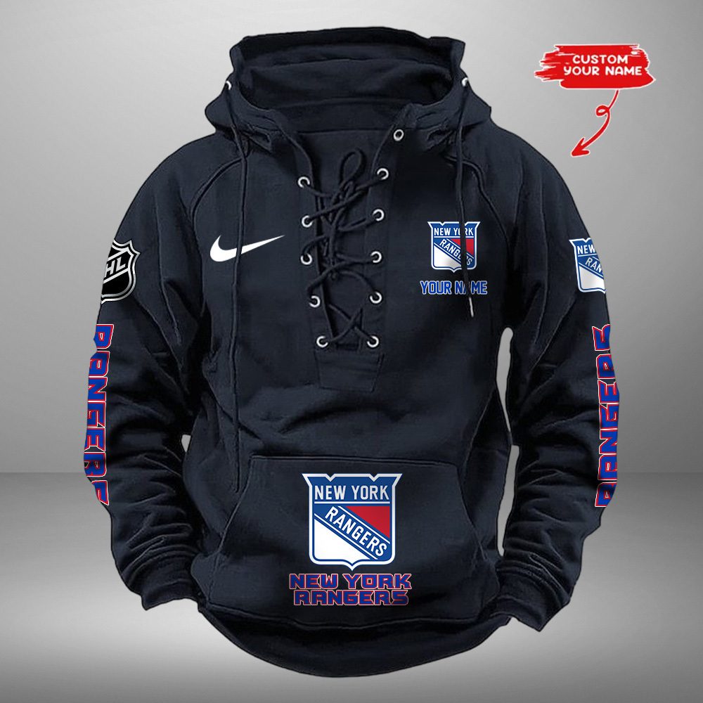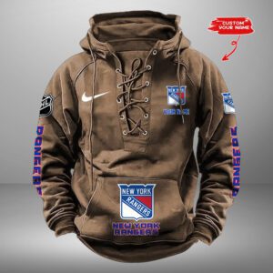 New York Rangers NHL Swoosh Hooded Lace Up Retro Vintage Hoodie Custom Name