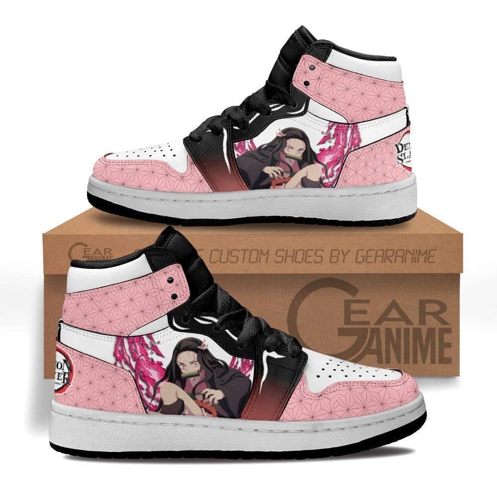 Nezuko Kamado Kids Sneakers Custom Anime Demon Slayer Kids Jordan 1 Shoes