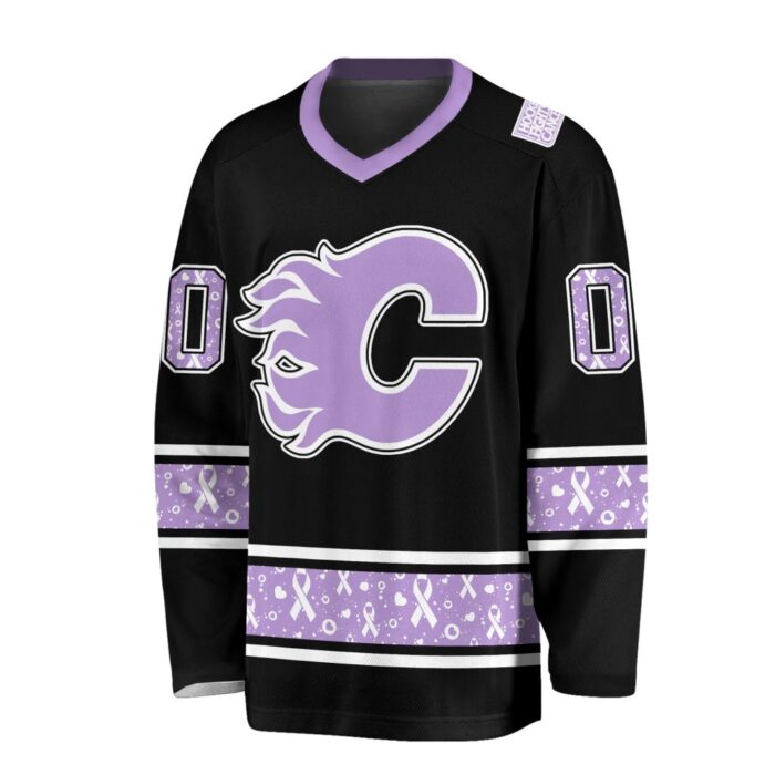 NHL Calgary Flames Special Black Hockey Fight Cancer V-neck Hockey Jersey FHJ301
