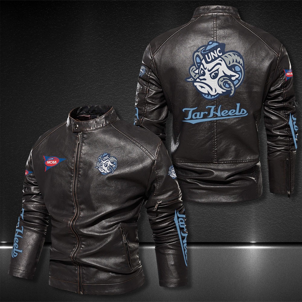 North Carolina Tar Heels Motor Collar Leather Jacket For Biker Racer