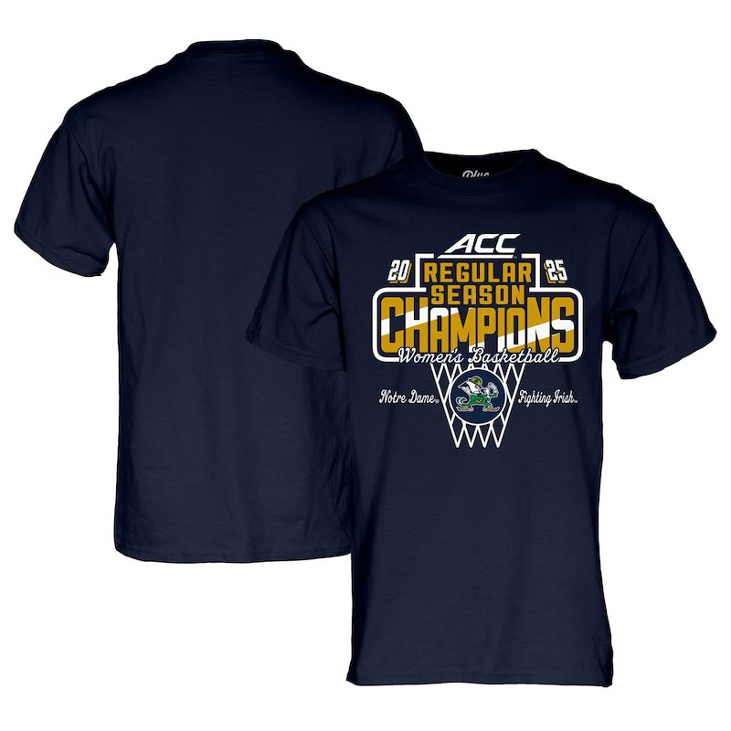 Notre Dame Fighting Irish Blue 84 Unisex 2025 ACC Women’s Basketball Regular Season Champions T-Shirt – Navy