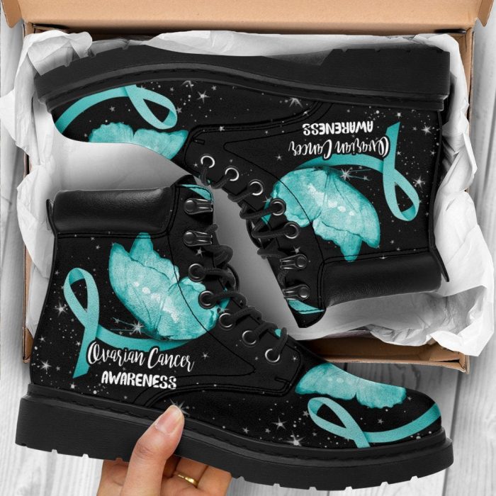 Ovarian Cancer Awareness Boots Ribbon Shoes CB1022
