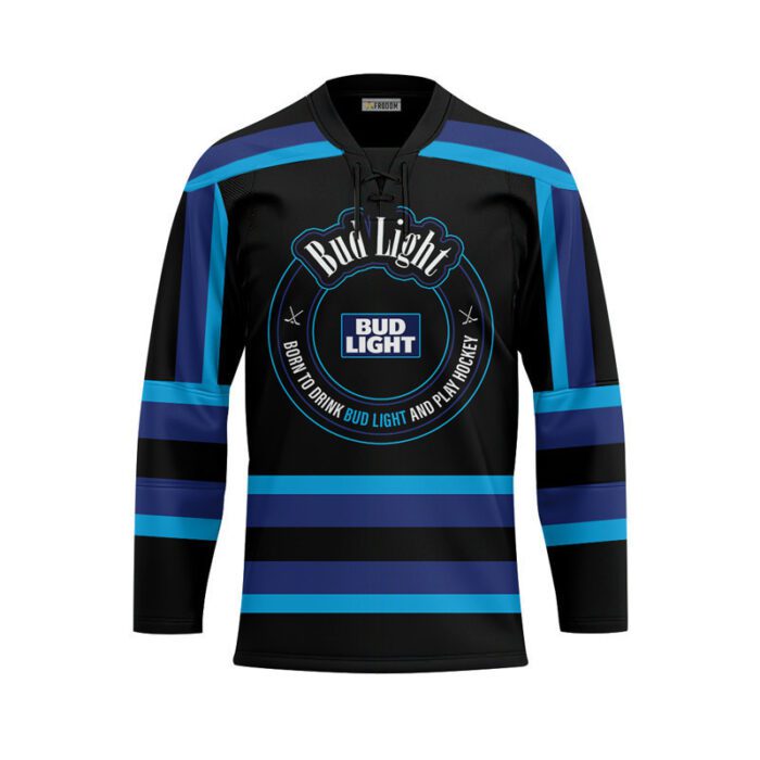 Personalized Black Born To Drink Bud Light and Play Lace Hockey Jersey