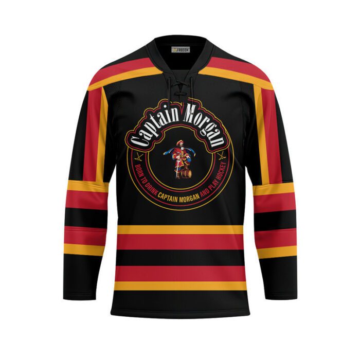 Personalized Black Born To Drink Captain Morgan and Play Lace Hockey Jersey