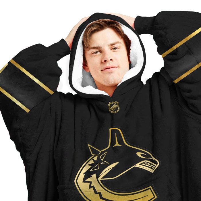 Personalized Black Golden NHL Vancouver Canucks Oodie Blanket Hoodie Wearable Blanket