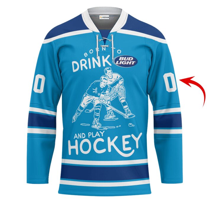 Personalized Born To Drink Bud Light and Play Lace Hockey Jersey