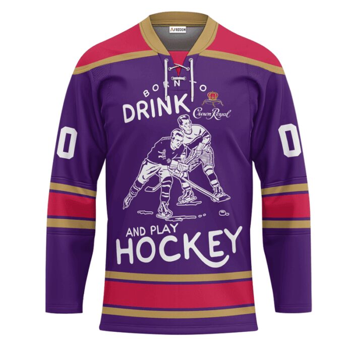 Personalized Born To Drink Crown Royal and Play Lace Hockey Jersey