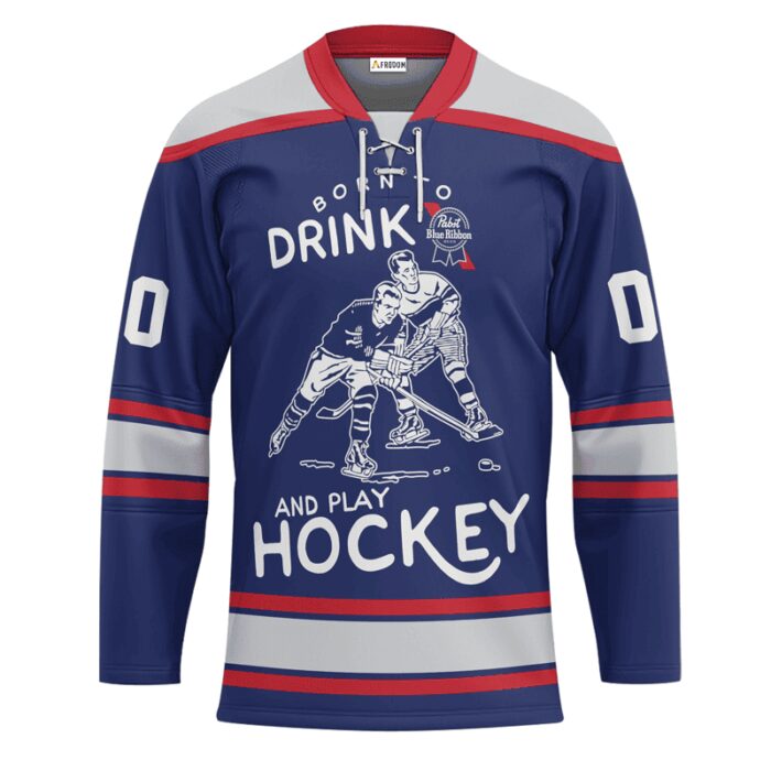 Personalized Born To Drink Pabst Blue Ribbon and Play Lace Hockey Jersey