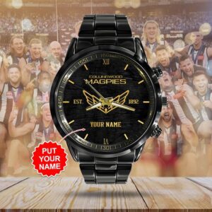 Personalized Collingwood FC Black Stainless Steel Watch GSW1073