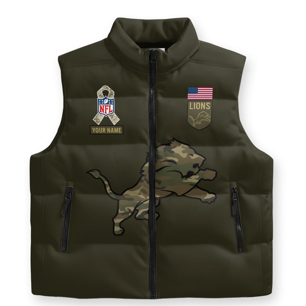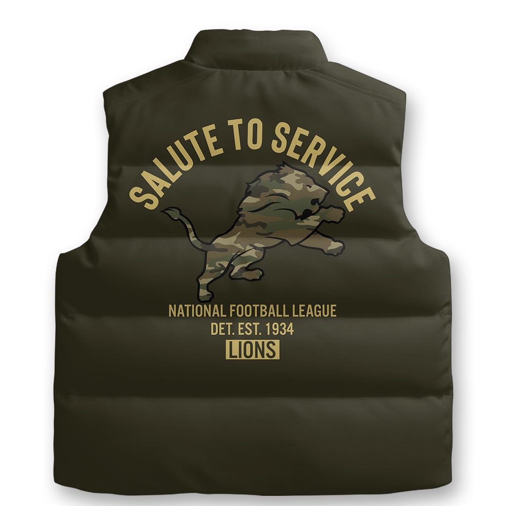 Personalized Detroit Lions x Salute To Service 3D Sleeveless Down Jacket