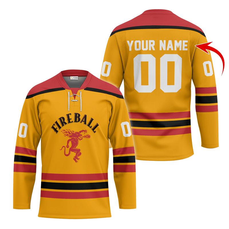 Personalized Fireball Whiskey Yellow Lace Hockey Jersey