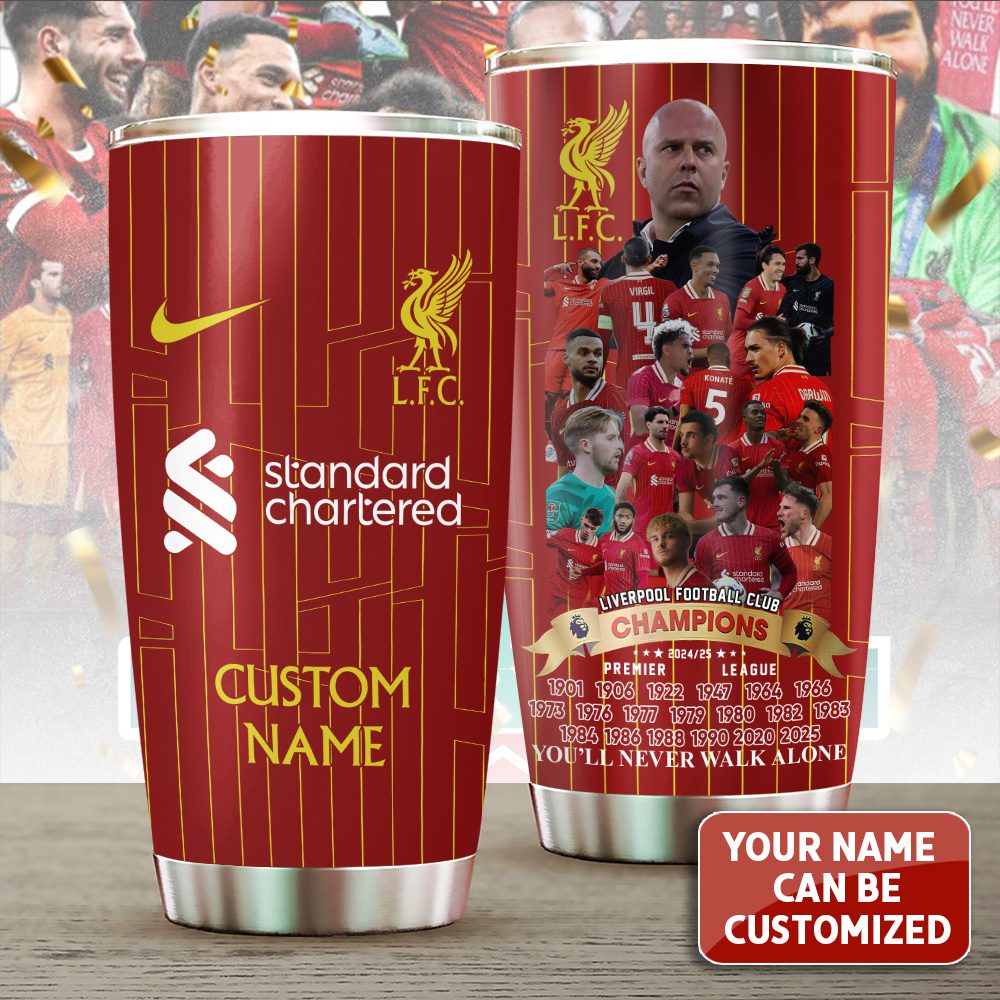 Personalized Liverpool FC Champion 2024/25 Premier League Tumbler Cup GCL1375