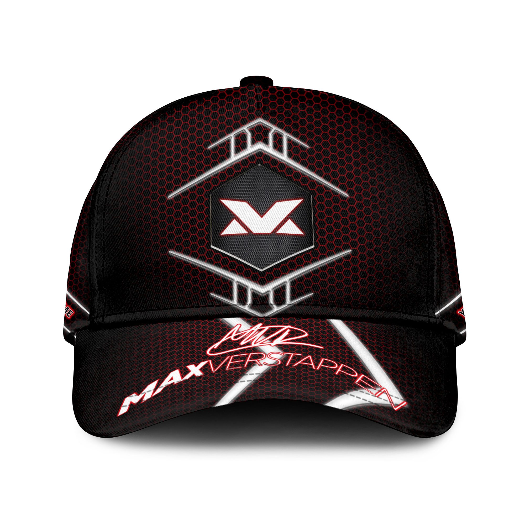 Personalized Max Verstappen Signature Red Bull Racing Classic Red Trellis Baseball Cap – Black CGI2148